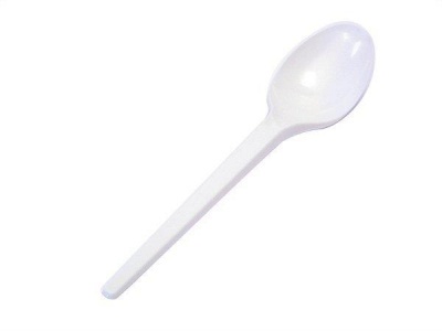 Fehér, műanyag eldobható kanál, kerti partik, büfék és fesztiválok elengedhetetlen kelléke.