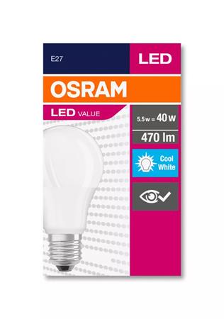 KezdőlapÜzemeltetésLétesítmény üzemeltetésIzzók, égőkLED izzó, E27, gömb, A60, 5W, 470lm, 4000K (HF), OSRAM "Value"
